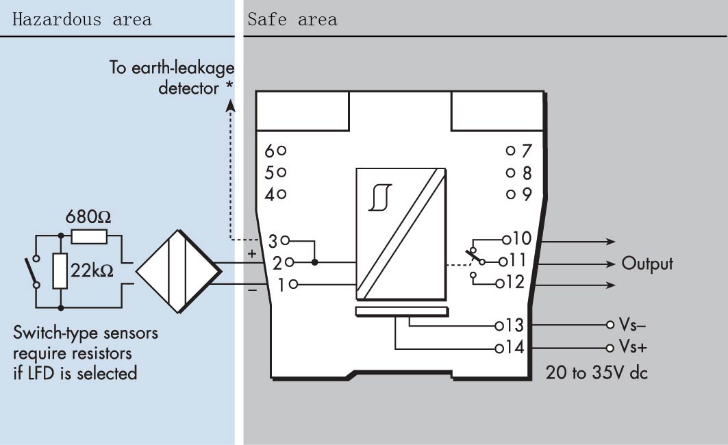 Note: Resistors must be fitted when using the LFD facility with a contact input